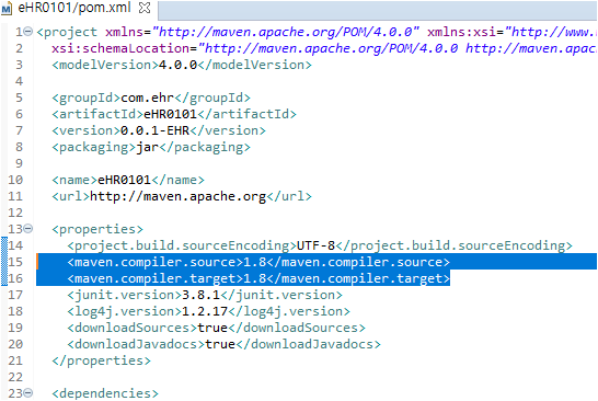 pom.xml을 열면 이런식으로 써져있는데 버전을 유동적으로 관리하기 위해서는 아래와 같이 ${}를 이용해서 쓰는 것이 좋다. 위에서 properties에 version을 적어주고 아래에 dependecies에 ${}를 해주면 된다.