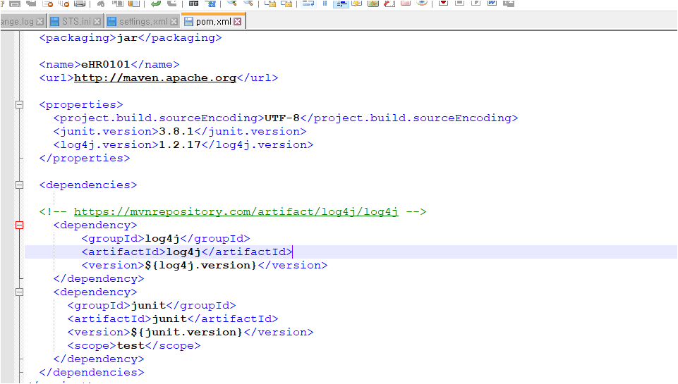 LOG를 사용해야 하므로 mvn에서 log4j를 다운받아야 한다.