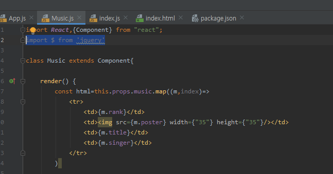 9. props, state 변수를 이용하여 m값을 받는다. 이제 class MusicDetail 로 보내야한다.