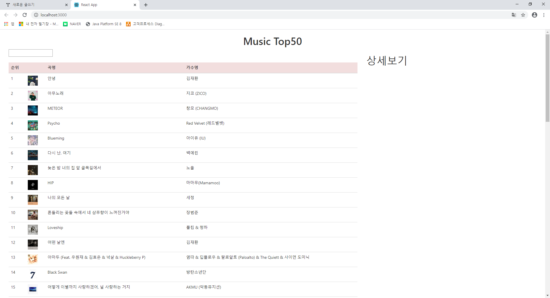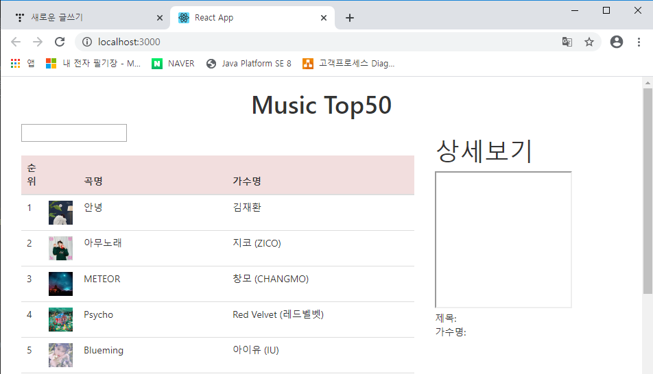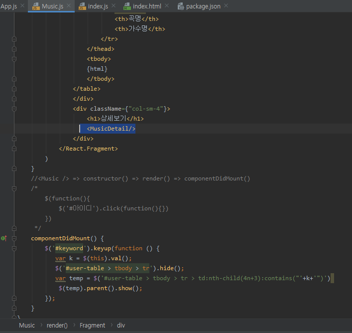 10. 아래있는 MusicDetail에서 {this.props.data.key}를 넣어준다. data 는 위에 아까 만든 state값이다.
