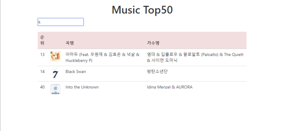 검색창에 쓴 값이 포함된 애들만 검색된다.
