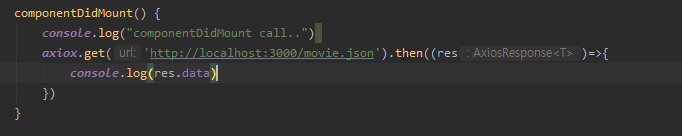 componentDidMount 안에 링크를 넣어주고 res를 콘솔에 찍어본다. res가 데이터 가져온 것.