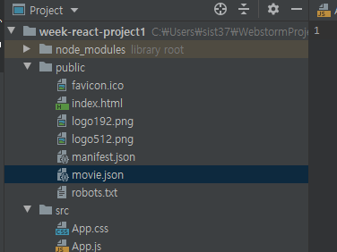 1. 아까는 index.js에 const로 데이터를 넣어줬지만 이번엔 movie.json을 public 안에다 복붙해서 넣는다.