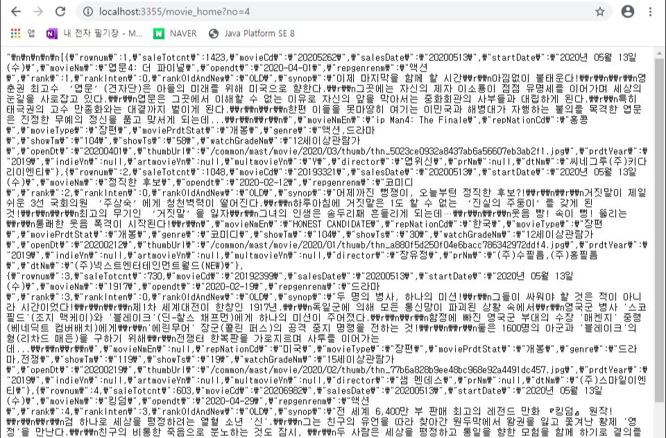 링크를 누르고 주소창에 http://localhost:3355/movie_home?no=4 라고 하면 no 값에 따라서 페이지가 다르게 나오는 것을 확인 할 수 있다.