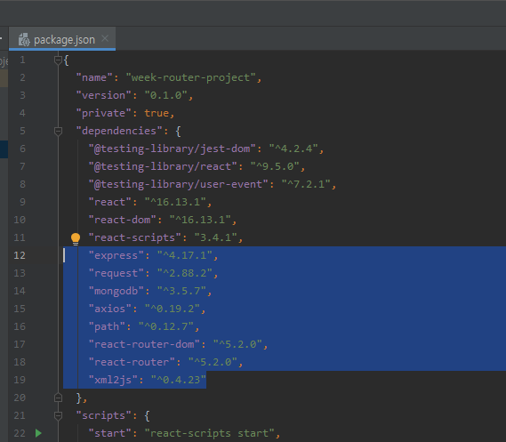 2. package.json에 라이브러리를 넣는다.