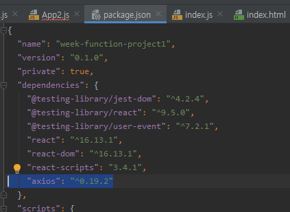 3. 파일을 가져와야 하기 때문에 package.json에 axios를 import 해준다.