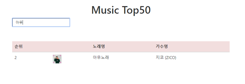 결과) 검색하는 노래가 리스트에 보여지게 된다.
