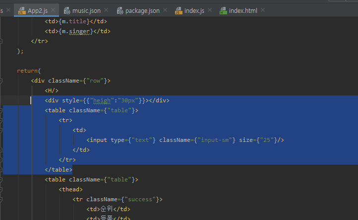 1. public 밑에 music.json을 붙여넣는다. 2. index.html에 css를 넣는다. 클래스로 container 도 적어..