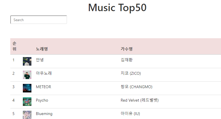 6. Music Top50 이 먼저 있어야 하므로 얘를 먼저 코딩한다.