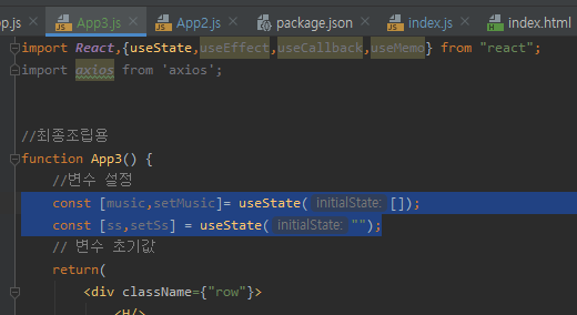 4. 새 js파일을 만들어서 useState,useEffect,useCallback,useMemo 를 import한다.