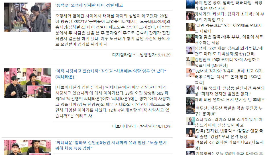 결과) 오른쪽에 인기순위처럼 생긴 것을 알 수 있다.