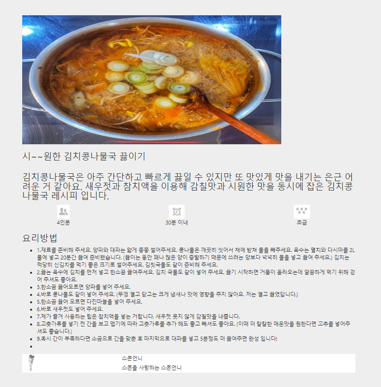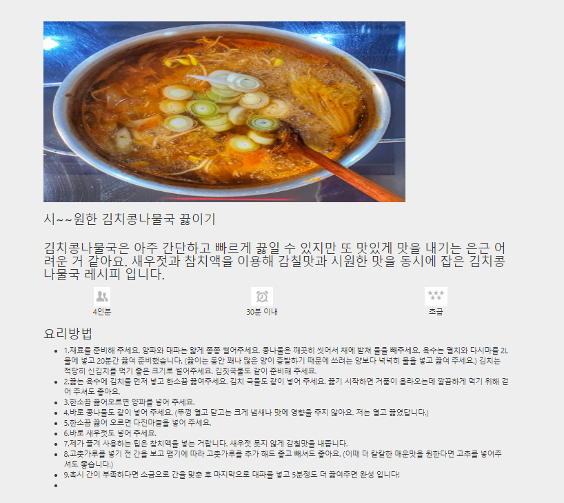 5. 요리방법 정보도 출력해보자