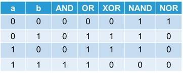 | NOT , AND , OR , XOR |