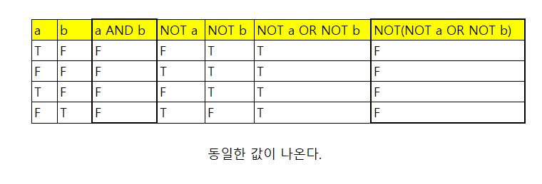 - NOT(거짓) = 참